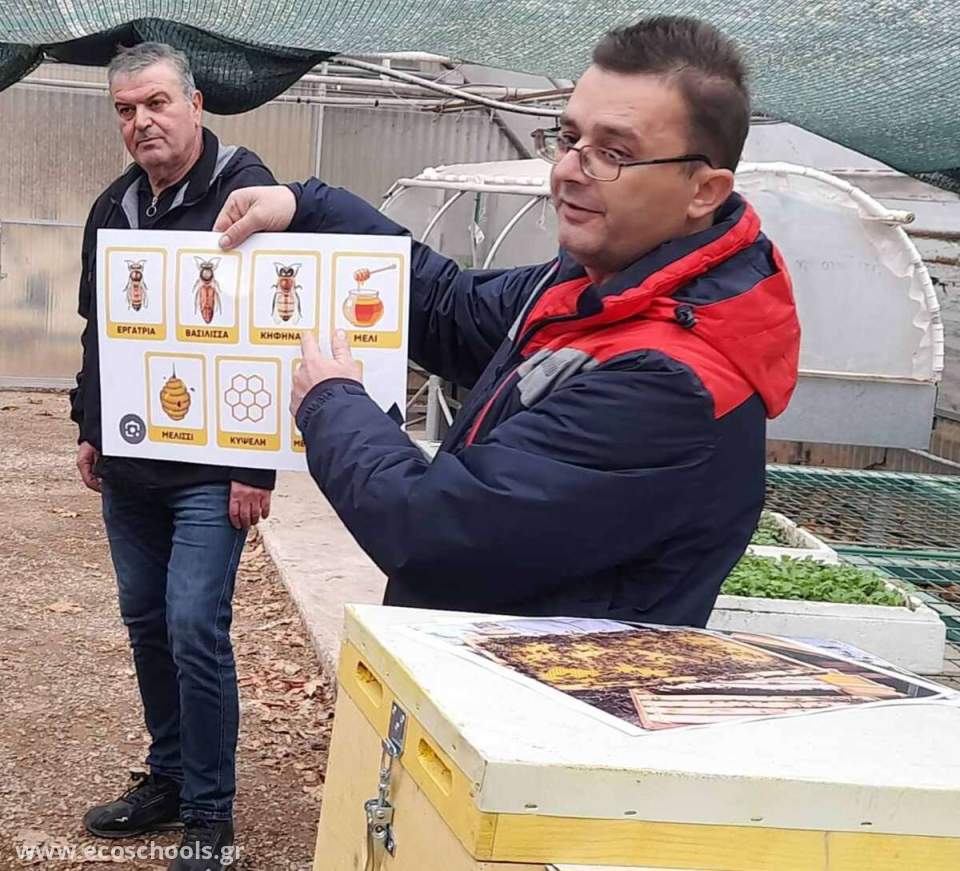 Με τη βοήθεια μιας άδειας κυψέλης, μιας στολής μελισσοκόμου, ενός καπνιστηριού και πλήθος άλλων εργαλείων, οι μαθητές/τριες κατανόησαν πλήρως τη διαδικασία της ανάπτυξης και ζωής του θαυμαστού κόσμου των μελισσών καθώς και των προϊόντων που παράγουν (μέλι, πρόπολη, βασιλικό πολτό).