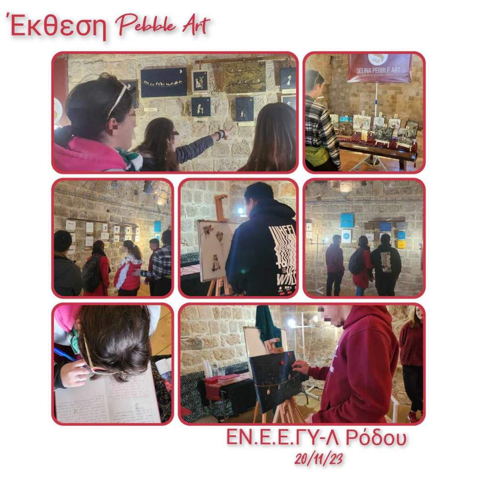 Την Δευτέρα 20 Νοεμβρίου 2023 οι μαθήτες/τριες της Β2 Γυμνασίου και Α1 Λυκείου του σχολείου μας, στα πλαίσια διδακτικής επίσκεψης για το μάθημα των Εικαστικών, επισκέφτηκαν την έκθεση Pebble Art της Σελίνας Κρητικού που φιλοξενείται στην οπλοθήκη De Milly. Τα παιδιά εντυπωσιάστηκαν από τους πίνακες που ήταν φτιαγμένοι με βότσαλα και δημιούργησαν και εκείνα με την σειρά τους τα δικά τους σχέδια. Ευχαριστούμε πολύ την Selina Kritikou για την όμορφη υποδοχή και παρουσίαση.