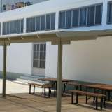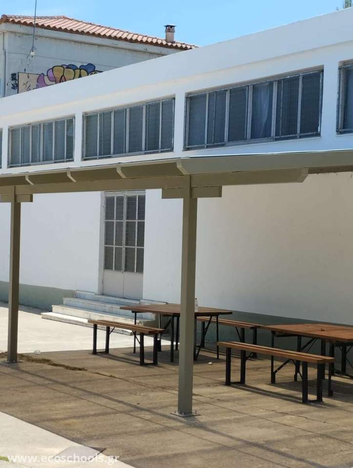 Το αίτημα της Περιβαλλοντικής επιτροπής περιλάμβανε την τοποθέτηση δύο στεγάστρων στα προαύλιά μας, και είναι ένα αίτημα ετών, που, επιτέλους, έγινε φέτος πραγματικότητα.