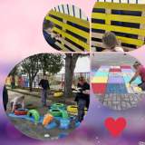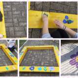 Τα νηπιάκια μας πρότειναν διάφορες ιδέες για την κατασκευή παιχνιδιών στη σχολική αυλή. Αυτό που μας ζήτησαν πρώτα από όλα ήταν μια αμμοδόχος. Ζητήσαμε τη βοήθεια ενός γονέα που ασχολείται με εμπόριο ξυλείας ο οποίος με χαρά μας ετοίμασε ένα ξύλινο πλαίσιο για την αμμοδόχο μας. Τα παιδιά ανέλαβαν να την διακοσμήσουν. Επίσης ο ίδιος γονιός μας ετοίμασε ροδέλες ξύλου τις οποίες τα παιδιά έβαψαν για να τις χρησιμοποιήσουμε ως παιχνίδι ισορροπίας. Βάψαμε και παλέτα για να φτιάξουμε το μουσικό παιχνίδι μας. Με τη βοήθεια του συλλόγου γονέων και κηδεμόνων ανανεώσαμε τα επιδαπέδια παιχνίδια της αυλής μας και βάψαμε παλιά λάστιχα αυτοκινήτων!