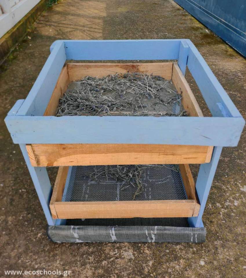 Η Β2 Γυμνασίου ετοίμασε έναν φυσικό αποξηραντή φυτών. Είναι κατασκευασμένος όλος από υλικά που θα κατέληγαν στα σκουπίδια ή στην πυρά! Μέσα σε λίγες ημέρες μπορεί να αποξηραίνει σε δύο συρτάρια φυτά που προορίζονται είτε για καλλωπισμό είτε για φαγητό.