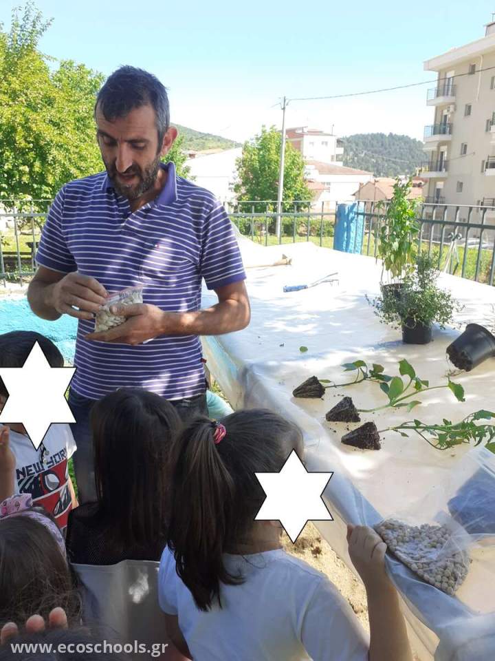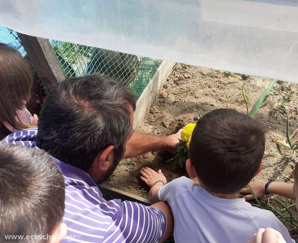 Με τη βοήθεια πατέρα - γεωπόνου φυτέψαμε ντομάτες , φασόλια , ρεβύθια , δεντρολίβανο , ρίγανη , λουλούδια κ.α . φυτά στο θερμοκήπιο και στην αυλή μας.