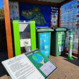 Το κιόσκι αυτό είναι κατασκευασμένο εξ‘ ολοκλήρου από ανακυκλώσιμα υλικά και διαθέτει τρεις διαφορετικούς κάδους ανακύκλωσης :