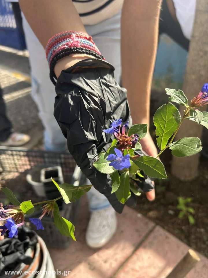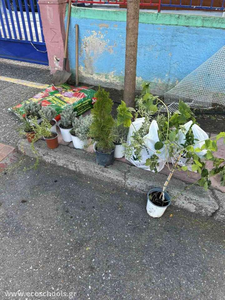 Οι μαθητές του Τμήματος Ένταξης και των τμημάτων της Β' και της Στ' τάξης στις 8/10/2024 φύτεψαν αρωματικούς θάμνους, ανθοφόρα φυτά και καλλωπιστικά δέντρα (μπουκαμβίλια, βίγκα κ.α.), στα παρτέρια του αύλειου χώρου. Τα φυτά και το χώμα ήταν χορηγία ιδιωτικών φυτώριων και το σκάψιμο και η προετοιμασία του χώρου πραγματοποιήθηκε με τη συνδρομή του τμήματος Πρασίνου του Δήμου Καλαμαριάς.