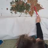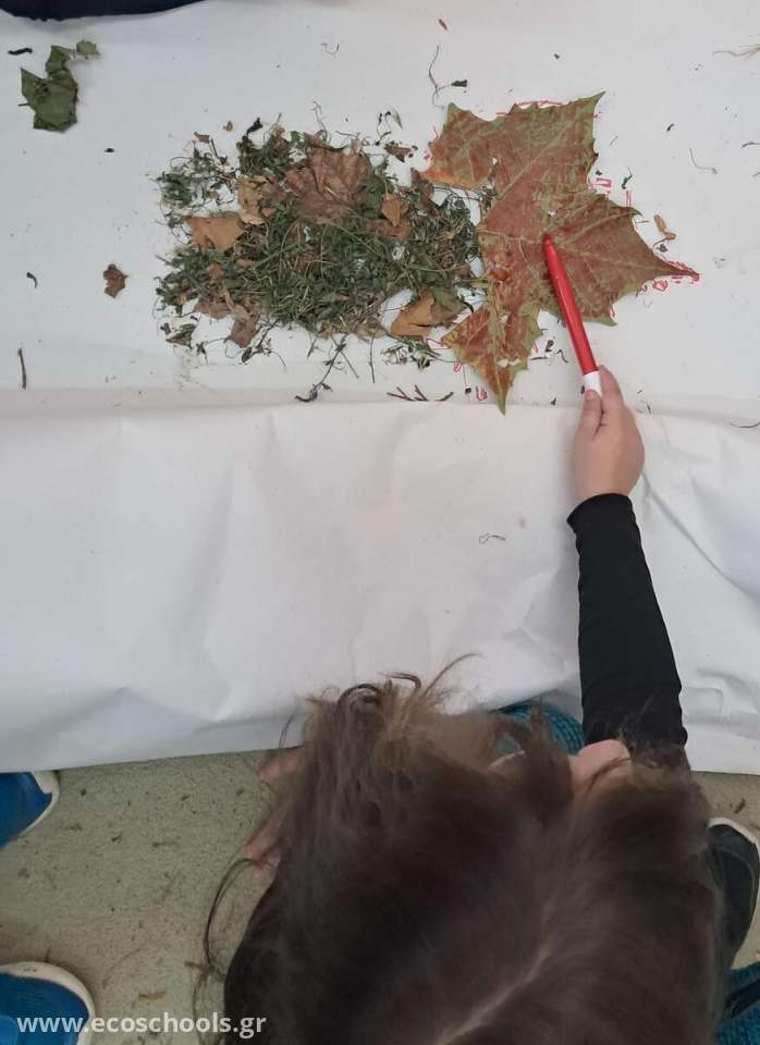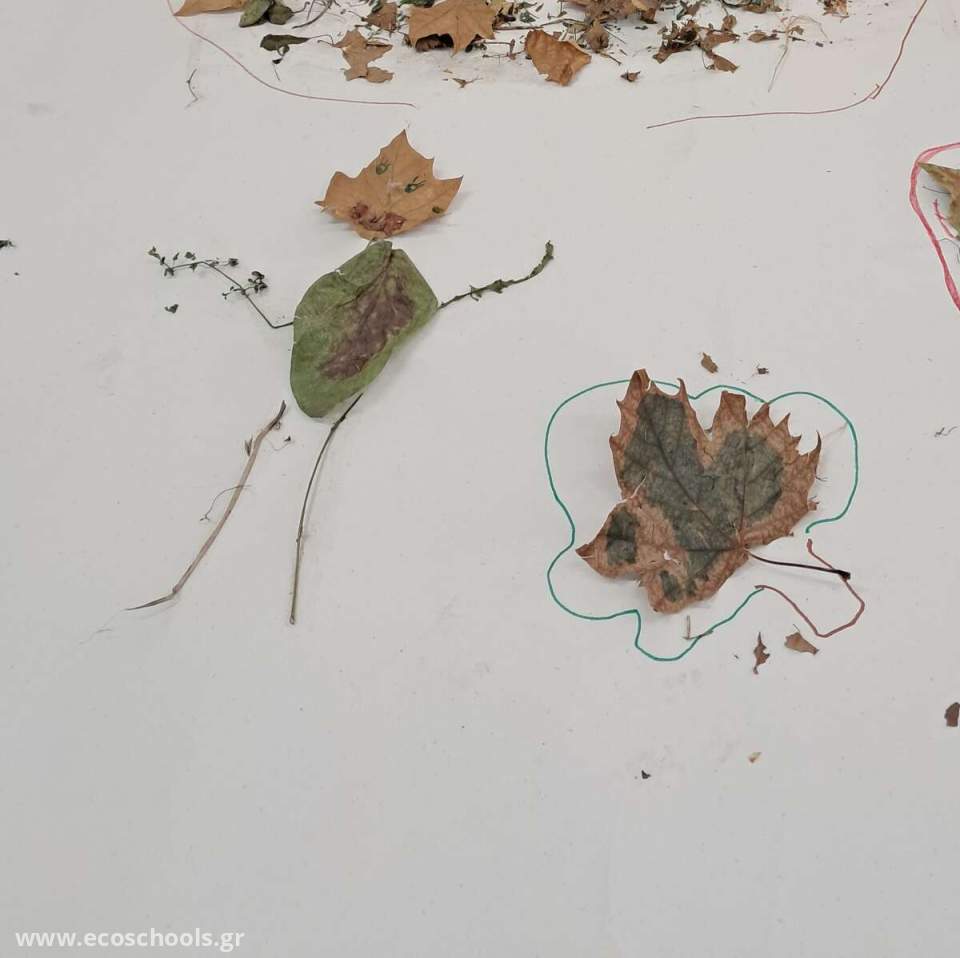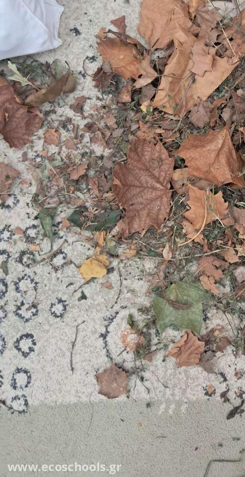 Καθαρίσαμε την αυλή μας από τα φύλλα , τα χόρτα και τα κλαδιά . Με τα υλικά που μαζέψαμε κάναμε ένα ομαδικό κολλάζ