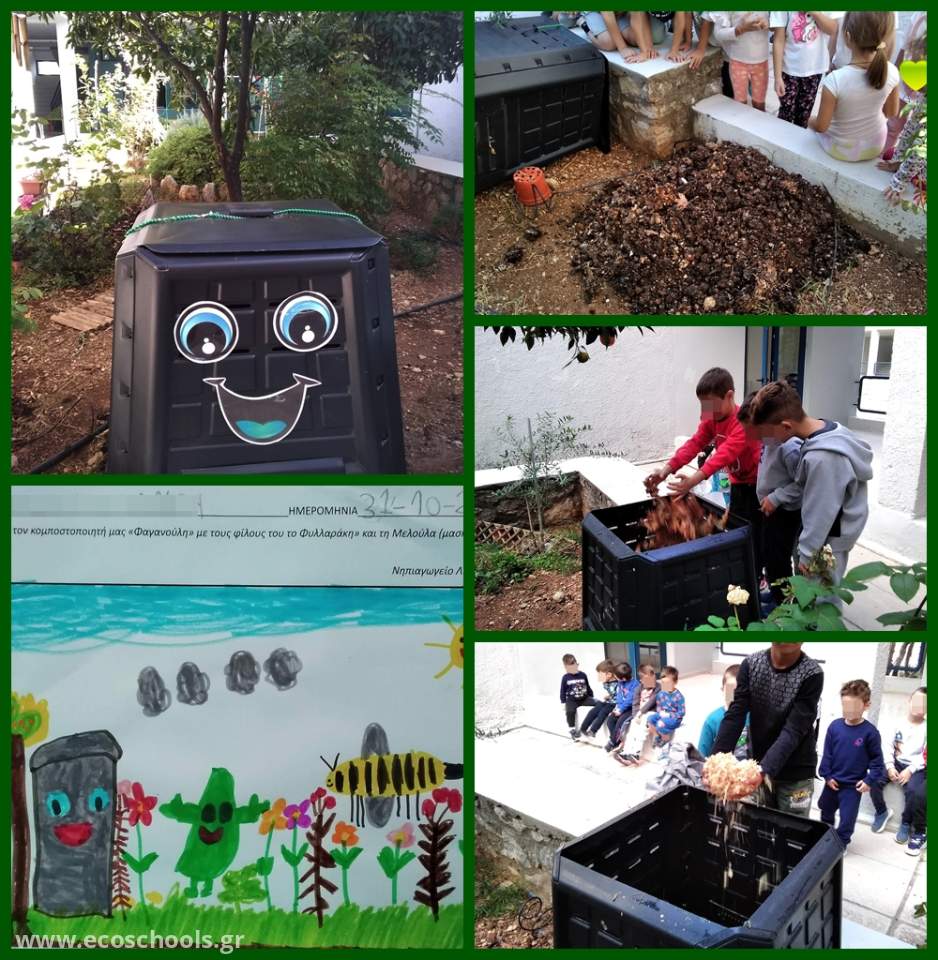 Στον κήπο μας έχουμε κάδο κομποστοποίησης, το «Φαγανούλη» όπως τον βαφτίσαμε διότι θέλει συνέχεια να «τρώει».