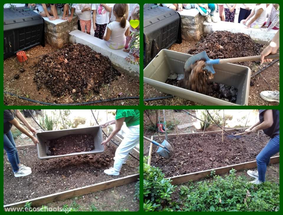 Στο σχολείο μας λειτουργεί από πέρυσι με επιτυχία, χάρη στη συνεργασία και τη συμμετοχή των γονέων, πρόγραμμα κομποστοποίησης για την παραγωγή οργανικού, φυσικού μίγματος (κομπόστ).