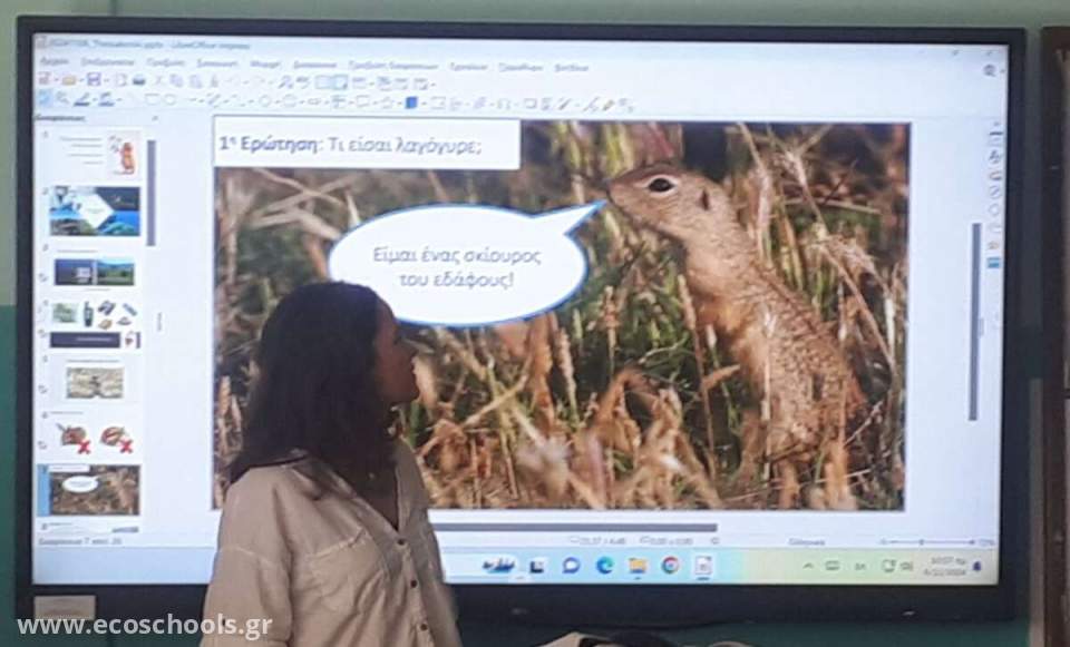 Οι μικροί μαθητές με βιωματικό τρόπο μέσα από παιχνίδι δράσης μαθαίνουν για τον λαγόγυρο που ειναι είδος προς εξαφάνιση στην Ελλάδα. Από τι απειλείται και πως να τον προστατέψουμε. Μαζί με τον λαγόγυρο και την φύση ως περιβάλλον, αλλά και την ανθρώπινη φύση η οποία είναι αλληλοεξαρτόμενή της.