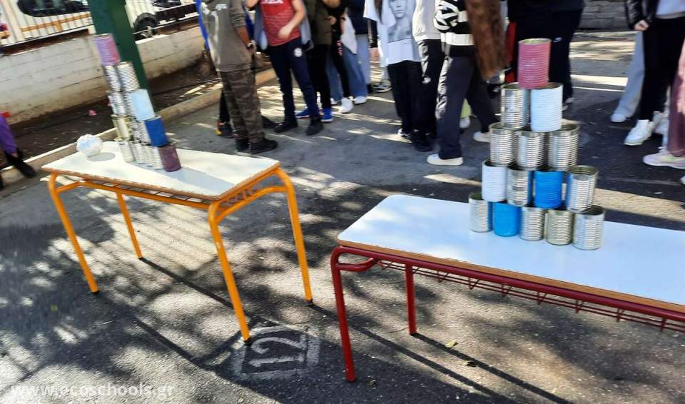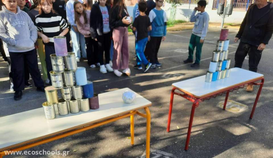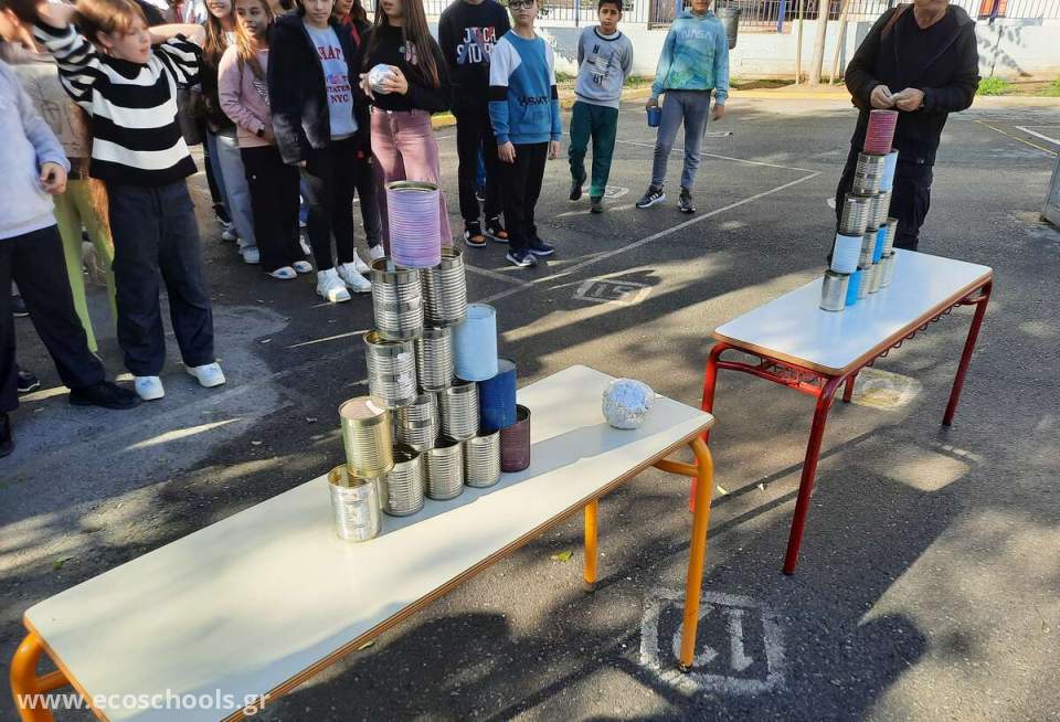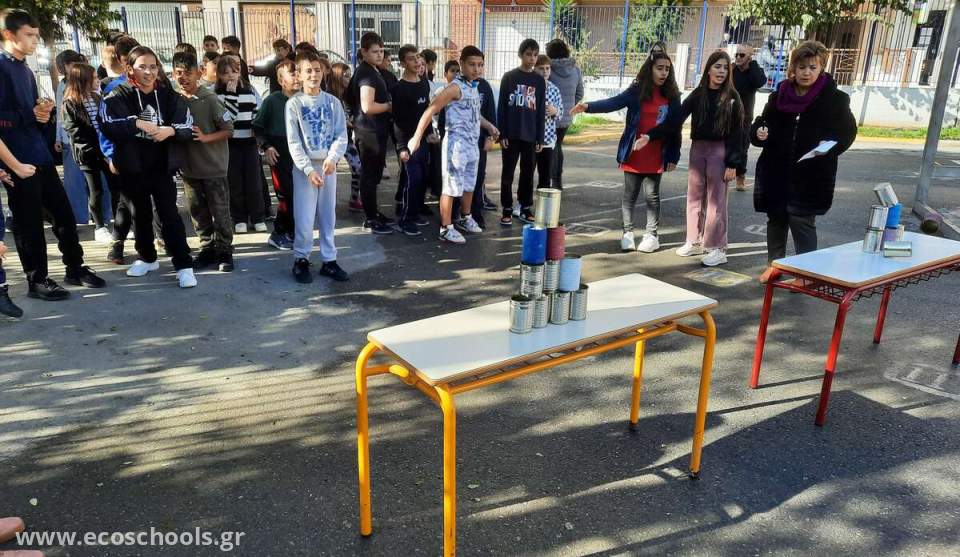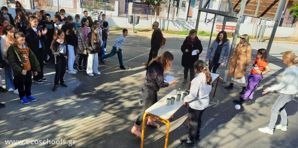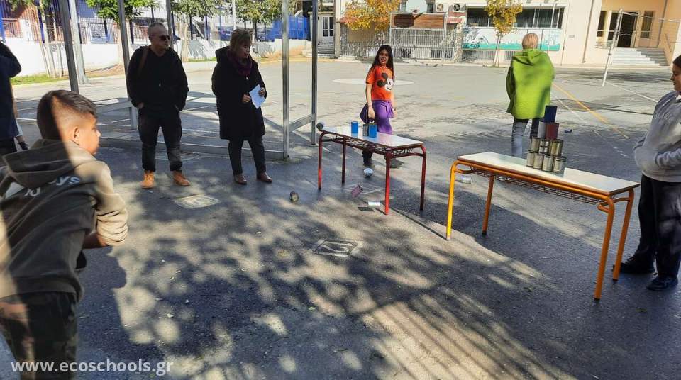 Κουτάκια ανακύκλωσης και μπάλες από χαρτί χρησιμοποιήθηκαν για να διαγωνιστούν οι μαθητές της Ε και ΣΤ τάξης. Όποιος έριχνε περισσότερα κουτάκια έπερνε περισσότερους πόντους. Τελικά το ΣΤ2 μάζεψε τους περισσότερους πόντους και νίκησε.