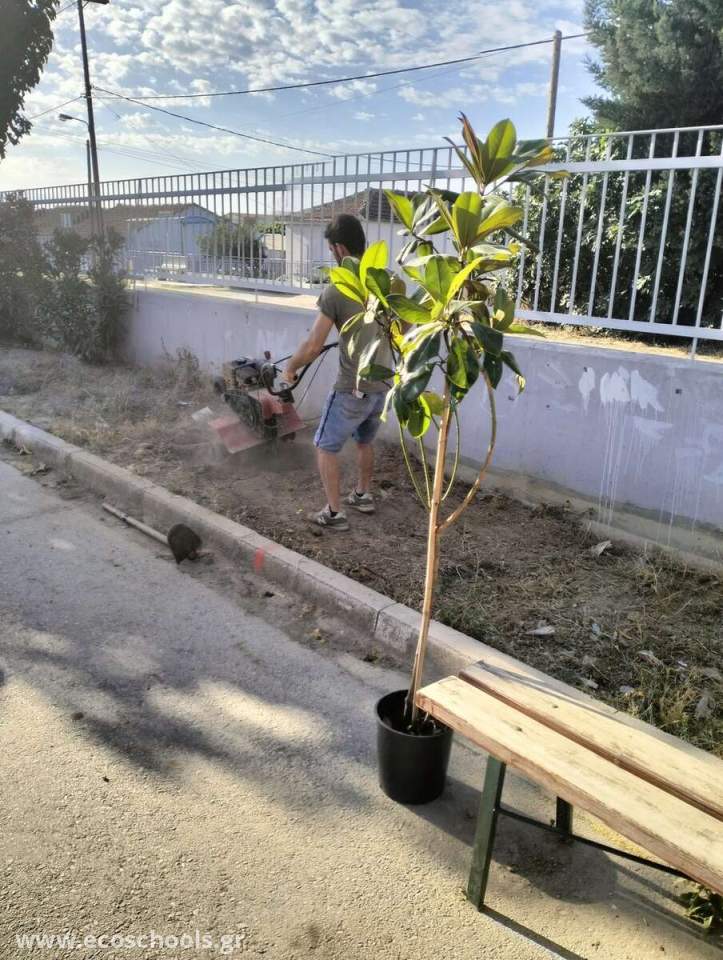 Ολοκληρώνεται για φέτος ο εξωραϊσμός της σχολικής αυλής του 10ου Γυμνασίου Βόλου στο πλαίσιο της Δράσης «Οικολογικά Σχολεία», στην οποία συμμετέχει η σχολική μονάδα. Μανόλιες στολίζουν πλέον τον κήπο του γυμνασίου, ευγενική προσφορά της Γεωτεχνικής Βόλου και του γεωπόνου κ. Κουντουρά Δωρόθεου.