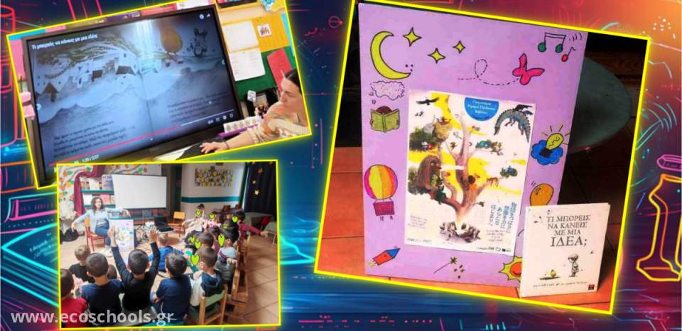 Έτσι διαβάσαμε και τα δύο σχολεία το υπέροχο βιβλίο που προσεγγίζει την έννοια της ιδέας με τρόπο ευφάνταστο και δημιουργικό και φυσικά καταθέσαμε κι εμείς τις δικές μας ιδέες. Μάλιστα τις συνδέσαμε με την φαντασία μας και απογειώθηκαν! Η ταξιδιάρικη αφίσα μας βοήθησε να εκφραστούμε μέσω της φαντασίας μας χωρίς περιορισμούς και σύντομα η σκέψη να δημιουργούμε εικόνες και φανταστικές καταστάσεις άρχισε να γίνεται διασκεδαστική!