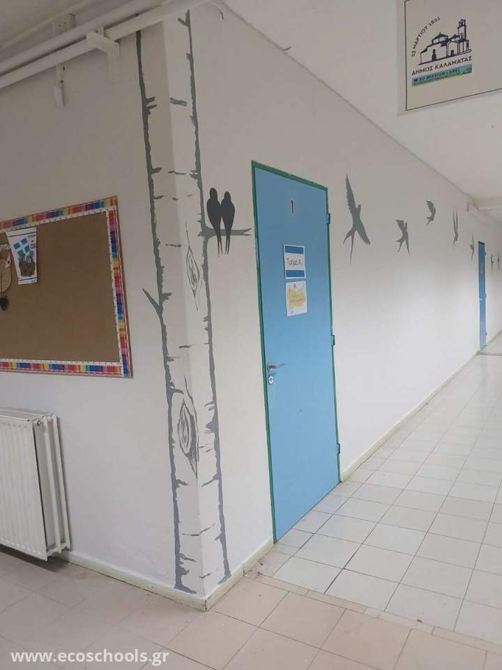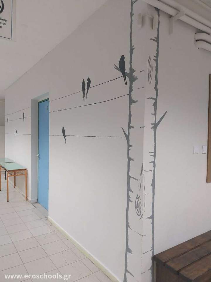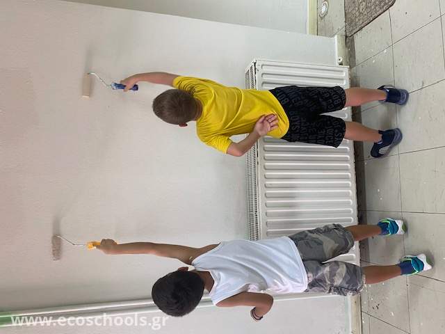 Μία από τις ενότητες που ανέλαβε το σχολείο μας για φέτος στα Οικολογικά Σχολεία (Δίκτυο Περιβαλλοντικής Εκπαίδευσης "Eco Schools") είναι σχετική με τη μείωση της σπατάλης της ηλεκτρικής ενέργεια. Με αυτήν την αφορμή, λοιπόν, ο Σύλλογος Γονέων και Κηδεμόνων, εκπαιδευτικοί και παιδιά έβαψαν το ισόγειο με ένα φωτεινό χρώμα, το οποίο είχε ως αποτέλεσμα ήδη να έχει ελαττωθεί η χρήση των ηλεκτρικών λαμπτήρων σε αυτόν τον χώρο. Η γραμματέας του Συλλόγου Γονέων ανέλαβε να διακοσμήσει μοναδικά και διακριτικά τον διάδρομο του ισογείου.