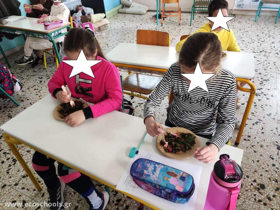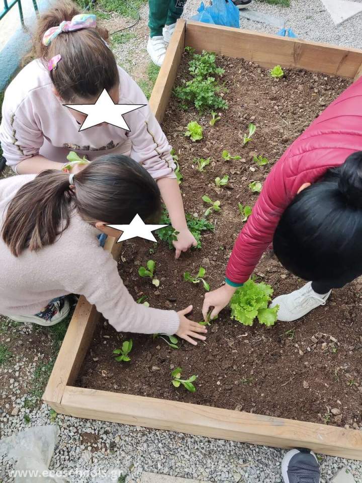 Μαζέψαμε τα λαχανικά μας: παντζάρια, σέσκουλα, ραπανάκια και μαϊντανό. Τα δώσαμε στην κυρία Άννα, μια μαμά μας, και φάγαμε μια υπέροχη σαλάτα με βιολογικά προϊόντα! Τα δικά μας ξεχωριστά βιολογικά προϊόντα!!!!!