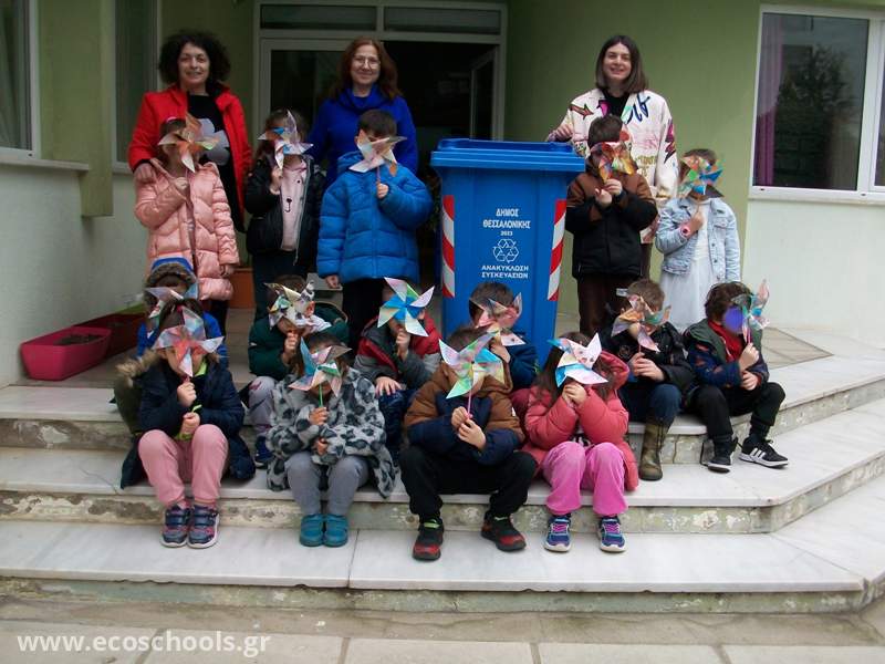 Μετά από αίτημα μας προς το Τμήμα Κάδων του Δήμου Θεσσαλονίκης τοποθετήθηκε στο σχολείο μας, μπλε κάδος ανακύκλωσης εσωτερικού χώρου για συγκέντρωση ανακυκλώσιμου χαρτιού από υλικό προς ανακύκλωση που συλλέγει το σχολείο (φωτοτυπικό χαρτί, χαρτόνια κά) στο πλαίσιο συνεργασίας με το τμήμα Ανακύκλωσης του Δήμου Θεσσαλονίκης για ανακύκλωση χαρτιού από σχολεία.