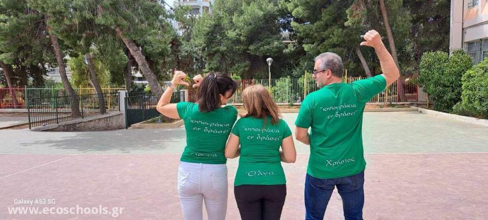 Μια επιπλέον δράση που έγινε σε συνεργασία με τη διεύθυνση του σχολείου μας και το Σύλλογο γονέων ήταν να φτιάξουμε καλοκαιρινά μπλουζάκια τα οποία έγραφαν από μπροστά ΄΄Οικολογικά Σχολεία- 5ο Δημοτικό Σχολείο Κερατσινίου΄΄ και πίσω στην πλάτη έγραφαν ΄΄Κηπουράκια εν δράσει΄΄ και το όνομα του κάθε παιδιού