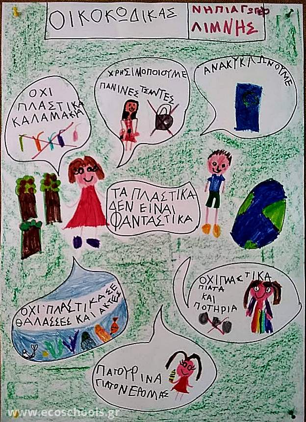 Τελειώνοντας το οικολογικό σχέδιο δράσης μας, μαθητές και εκπαιδευτικοί συντάξαμε ένα οικοκώδικα με κανόνες περιβαλλοντικής συμπεριφοράς που απαντά στο ερώτημα: «Τι μπορούμε να κάνουμε για να μειώσουμε την πλαστική ρύπανση;».