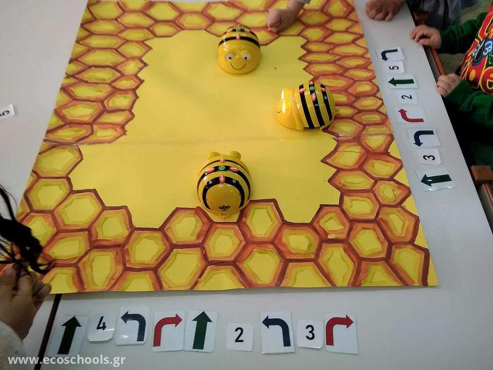 Εμείς προγραμματίσαμε τα ρομποτάκια Beebots έτσι ώστε να χορέψουν στην κυψέλη τους!