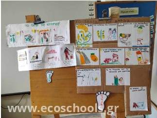 Αποφασίσαμε να δημιουργήσουμε και το οικολογικό αποτύπωμα που αφήνει ένα τρόφιμο. Τα παιδιά επέλεξαν τον ανανά και το αγγούρι που παράγεται στην Κρήτη και συγκρίναμε ποιο αφήνει το μεγαλύτερο οικολογικό αποτύπωμα στον πλανήτη μας.
