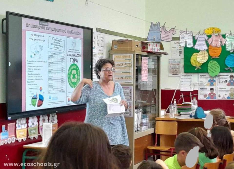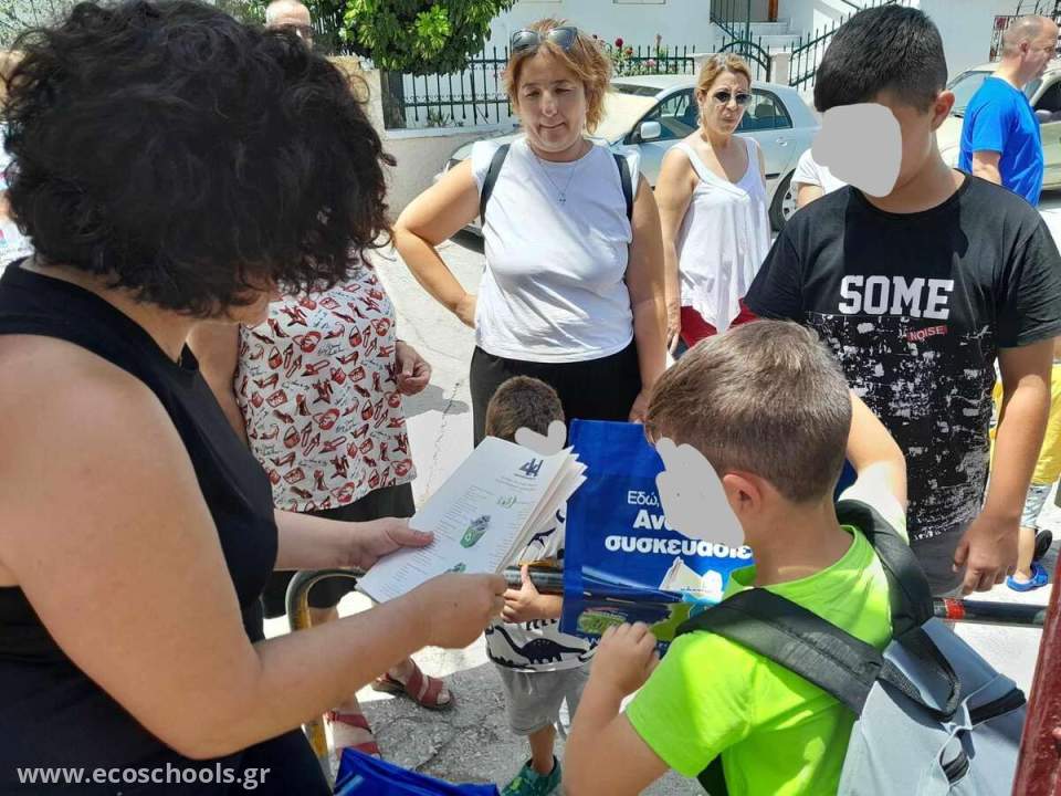 Ως επιστέγασμα της θεματικής, δημιουργήθηκε ανάλογο ενημερωτικό έντυπο από την μαθητική κοινότητα που διανεμήθηκε σε παιδιά για γονείς μαζί με έντυπα και τσάντες ανακύκλωσης από την Ανακύκλωση Αιγαίου.