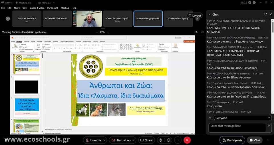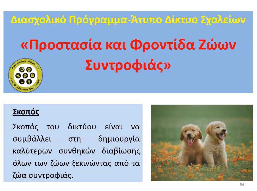 Η διαδικτυακή ενημερωτική παρουσίαση που διοργάνωσε η Πανελλαδική Φιλοζωική και Περιβαλλοντική Ομοσπονδία την Πέμπτη 4 Απριλίου 2024 αποτέλεσε μια εξαιρετική ευκαιρία για τους μαθητές της Α2 γυμνασίου και του Β λυκείου του τομέα Γεωπονίας Τροφίμων και Περιβάλλοντος, του ΕΝΕΕΓΥΛ Ρόδου, να εμβαθύνουν στο θέμα της φιλοζωίας και της προστασίας του περιβάλλοντος.