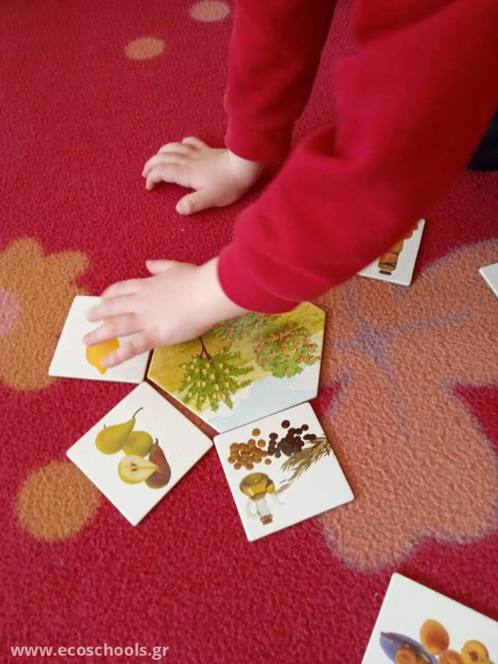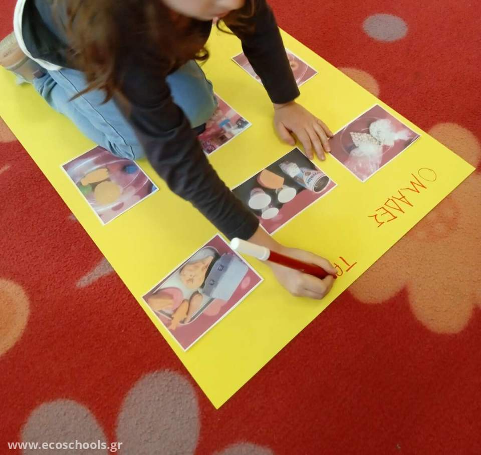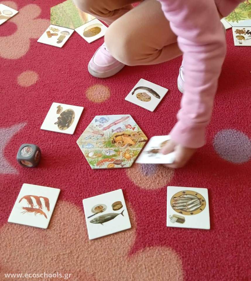 Τα παιδιά ανακαλύπτουν τις διαφορετικές ομάδες τροφών μέσα από μια δραστηριότητα ομαδοποίησης. Με τις  φωτογραφίες των τροφών δημιουργούν ένα πίνακα αναφοράς και εκφράζουν τις απόψεις τους σχετικά με την προέλευσή τους. Στη συνέχεια και μέσα από το παιχνίδι : "Από πού προέρχονται οι τροφές" έχουν την ευκαιρία να επιβεβαιώσουν ή να διαψεύσουν τις αρχικές τους υποθέσεις και να αντιληφθούν τη σύνδεση ανάμεσα στη Φύση και τις τροφές.