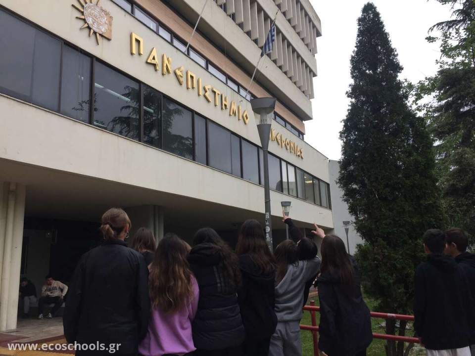 Την Τρίτη, 23 Απριλίου 2024 η Περιβαλλοντική Ομάδα του Γυμνασίου των Εκπαιδευτηρίων Ε. Μαντουλίδη πραγματοποίησε εκπαιδευτική επίσκεψη στο ΠΑΜΑΚ. Πιο συγκεκριμένα συναντήθηκε με τον κ. Περικλή Χατζηνάκο, Υπεύθυνο του Γραφείου Περιβάλλοντος του Πανεπιστημίου, το οποίο είναι διάσημο για τις πρακτικές ανακύκλωσης που εφαρμόζει. Έτσι ο κ. Χατζηνάκος εξήγησε στους μαθητές μας τις ανάγκες της ανακύκλωσης, τα πρακτικά προβλήματα που προκύπτουν κατά την εφαρμογή της, τα είδη των ανακυκλώσιμων υλικών, καθώς και τους τρόπους με τους οποίους πραγματοποιείται η ανακύκλωση στο συγκεκριμένο Πανεπιστήμιο. Ακολούθησε μία ενδιαφέρουσα και εποικοδομητική συζήτηση επί του θέματος, παράλληλα με την ξενάγηση των μαθητών μας στους χώρους του ΠΑΜΑΚ, ειδικά σε εκείνους όπου συλλέγονται τα ανακυκλώσιμα υλικά.