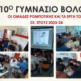 Το Σχ. Έτος 2023-24 δημιουργήθηκαν στο 10ο Γυμνάσιο Βόλου 4 ομάδες ρομποτικής, μία από κάθε τμήμα της Β΄ Γυμνασίου. Η ομάδα του Β2 κατασκεύασε έναν Σκορπιό, η ομάδα του Β3 έναν Χορευτή, η ομάδα του Β1 δύο προγράμματα για Αυτοκίνητο και η ομάδα του Β4 έναν Αθλητή που κάνει έλξεις. Τα παιδιά κατασκεύασαν τα ρομπότ και τα προγραμμάτισαν. Χρησιμοποιήθηκαν 3 ρομποτικά KitMicrobit και ένα ρομποτικό Kit της Lego.