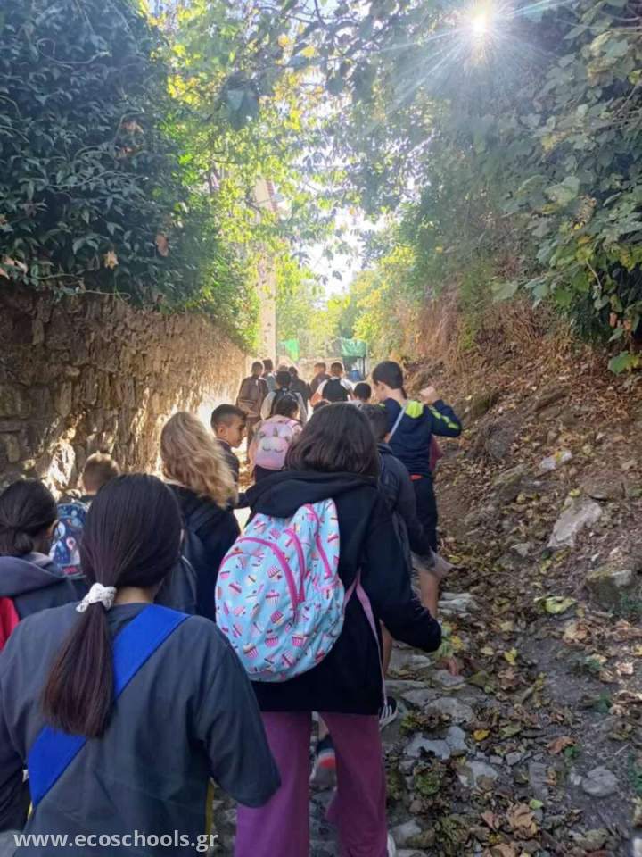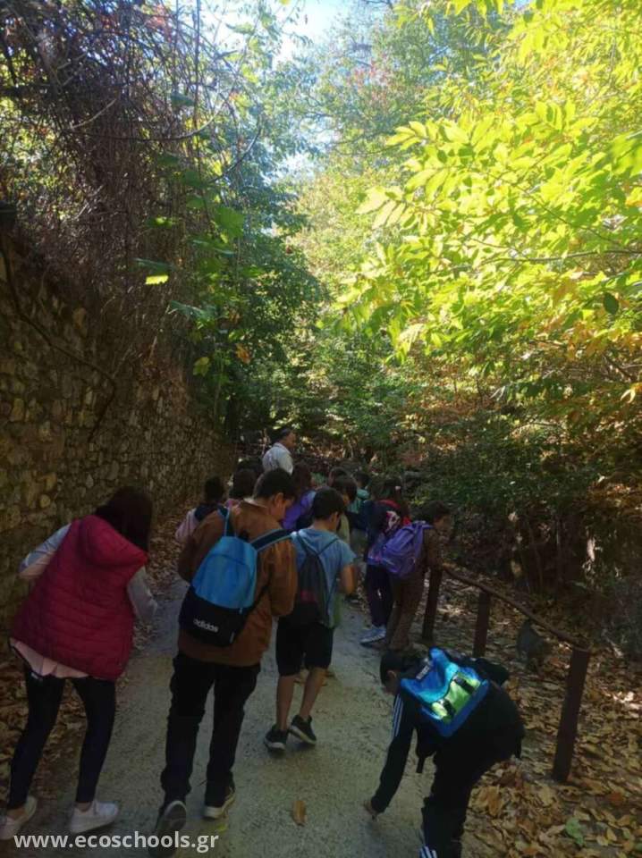 Στη διαδρομή, είχαν την ευκαιρία να εξερευνήσουν το φυσικό περιβάλλον και να μελετήσουν μια ποικιλία φυτών και δέντρων, όπως μηλιές, κυκλάμινα, κισσούς, καρυδιές, συκιές, ροδιές και κυδωνιές. Συγχρόνως, ενημερώθηκαν ότι εκτός από τον καρπό της καστανιάς ως βρώσιμο προϊόν, τα φύλλα και το εξωτερικό κάλυμμα (οι “αχινοί ” ) του κάστανου χρησιμοποιούνται ως όξινο φυτικό λίπασμα , καθώς επίσης ότι οι μέλισσες παράγουν από τον ανθό της το γνωστό "καστανόμελο". Παράλληλα, οι μαθητές/τριες είχαν την ευκαιρία να μαζέψουν κάστανα, καρπούς από τα δέντρα και φύλλα.