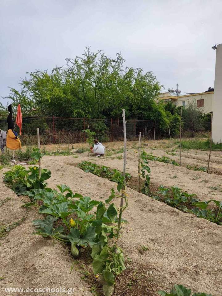 Οι μαθητές έμαθαν ,με τη βοήθεια των δασκάλων τους, να στηρίζουν τα φυτά για να μην βαρύνουν από τον καρπό και σπάσουν.