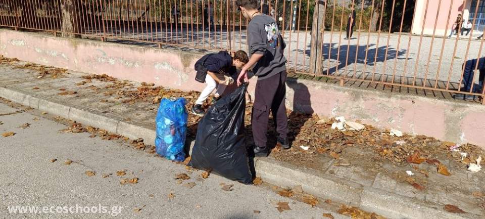 2η δράση. Καθαρισμός του άλσους του Προφήτη Ηλία και διαχωρισμός των σκουπιδιών πριν την ανακύκλωση. Οι μαθητές φόρεσαν γάντια, πήραν σακούλες απορριμμάτων και καθάρισαν το άλσος φθάνοντας πολύ κοντά στην Ιερά Μονή. Επίσης έγινε καθαρισμός και του εξωτερικού περιβάλλοντα χώρου του σχολείου μας. Μετά το τέλος της δράσης καθαρισμού, οι μαθητές/τριες της Περιβαλλοντικής ομάδας μετέφεραν ότι περισυνέλλεξαν στο σχολείο, όπου έγινε ο διαχωρισμός τους σε ειδικούς κάδους ανακύκλωσης που διαθέτει το σχολείο. O,τι υλικό δεν ανακυκλώνεται (σύμμεικτα απόβλητα), οδηγήθηκε στον πράσινο κάδο.