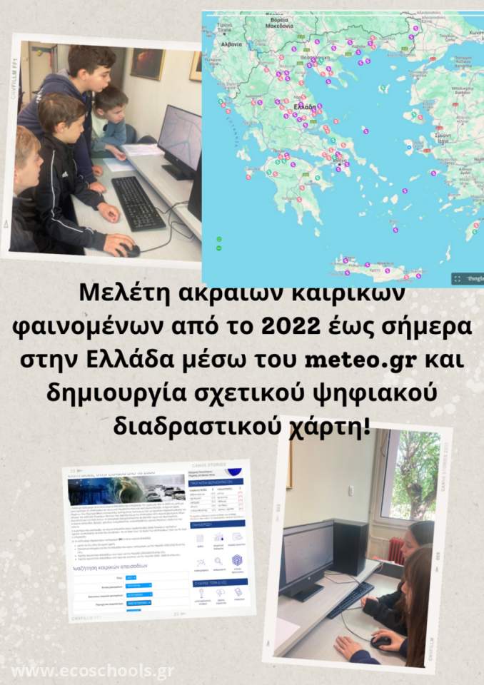 Δημιουργία ψηφιακού διαδραστικού χάρτη ακραίων καιρικών φαινομένων από 2022 έως σήμερα : https://www.thinglink.com/scene/1839007871019254628