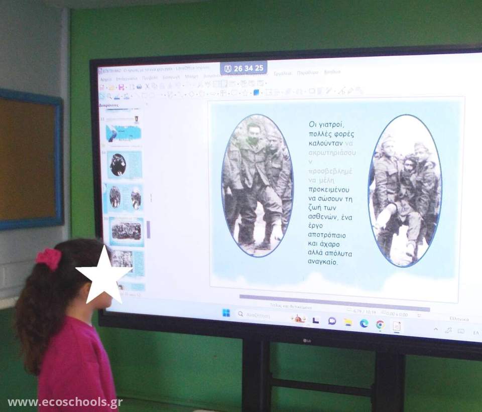 β) Ένα πολύ πρωτότυπο και ενδιαφέρον θέμα για «Τα ζώα , τους αφανείς ήρωες στον πόλεμο του1940», που ανέπτυξε στους μαθητές της ΣΤ΄ τάξης ο φίλος Μιχάλης Λημναίος.
