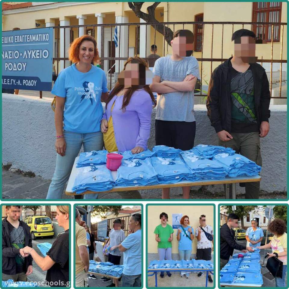 Το σχολείο μας στηρίζει και φέτος τη διοργάνωση- θεσμό Ρόδος για τη Ζωή! Οι μαθητές μας γίνονται εθελοντές για την προώθηση της φετινής γαλάζιας μπλούζας και είναι πολύ χαρούμενοι με αυτό! Φετινός στόχος είναι η αγορά ενός μηχανήματος Fibroscan, το οποίο θα χρησιμοποιηθεί από τις Παθολογικές κλινικές του Γ.Ν. Ρόδου, και το οποίο συνδέεται με την πρόληψη ηπατοκυτταρικού καρκινώματος, ξεκίνησε η πώληση των μπλουζών της εκδήλωσης, που για τη φετινή χρονιά είναι χρώματος γαλάζιο.