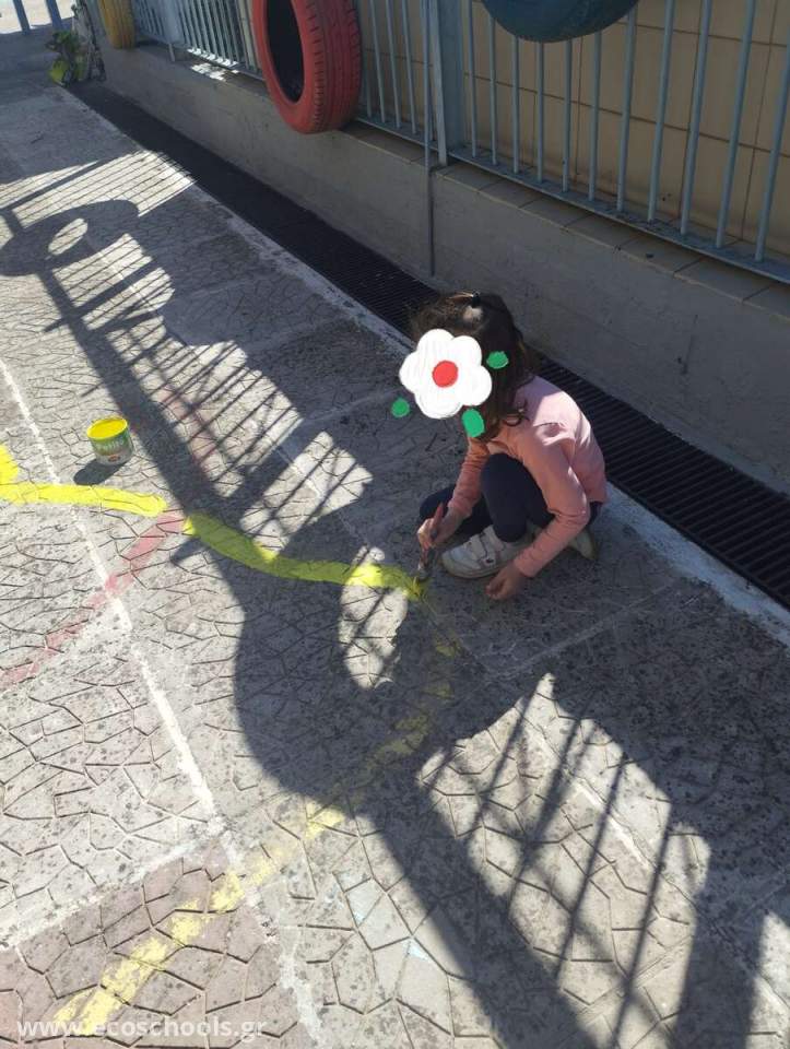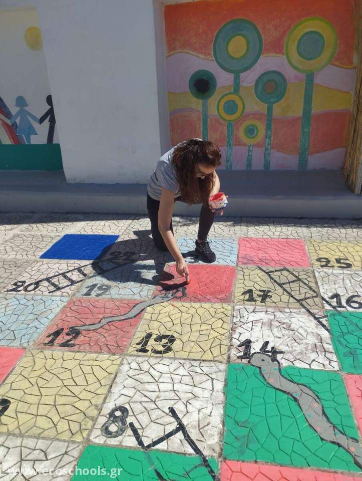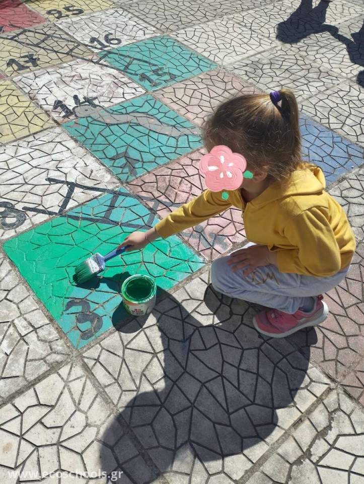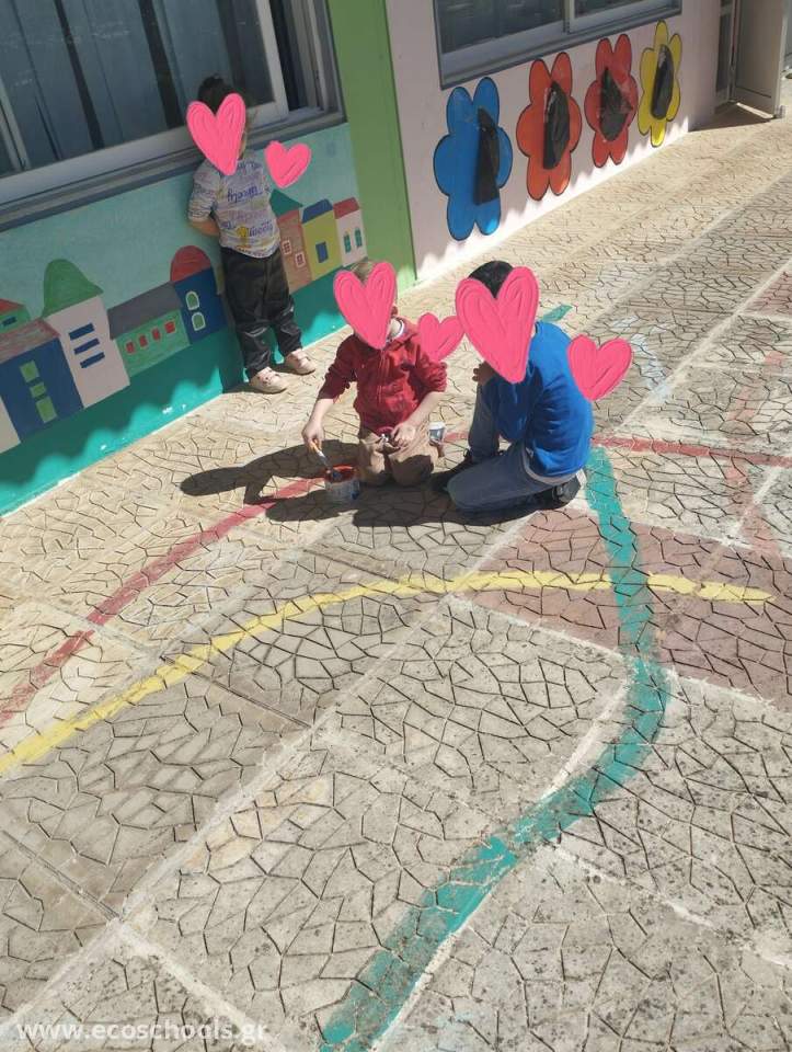 Ανανέωση των υπαρχόντων επιδαπέδιων ζωγραφιών με εθελοντική εργασία γονέων, παιδιών και του προσωπικού καθαριότητας. Τους ευχαριστούμε θερμά!!!!