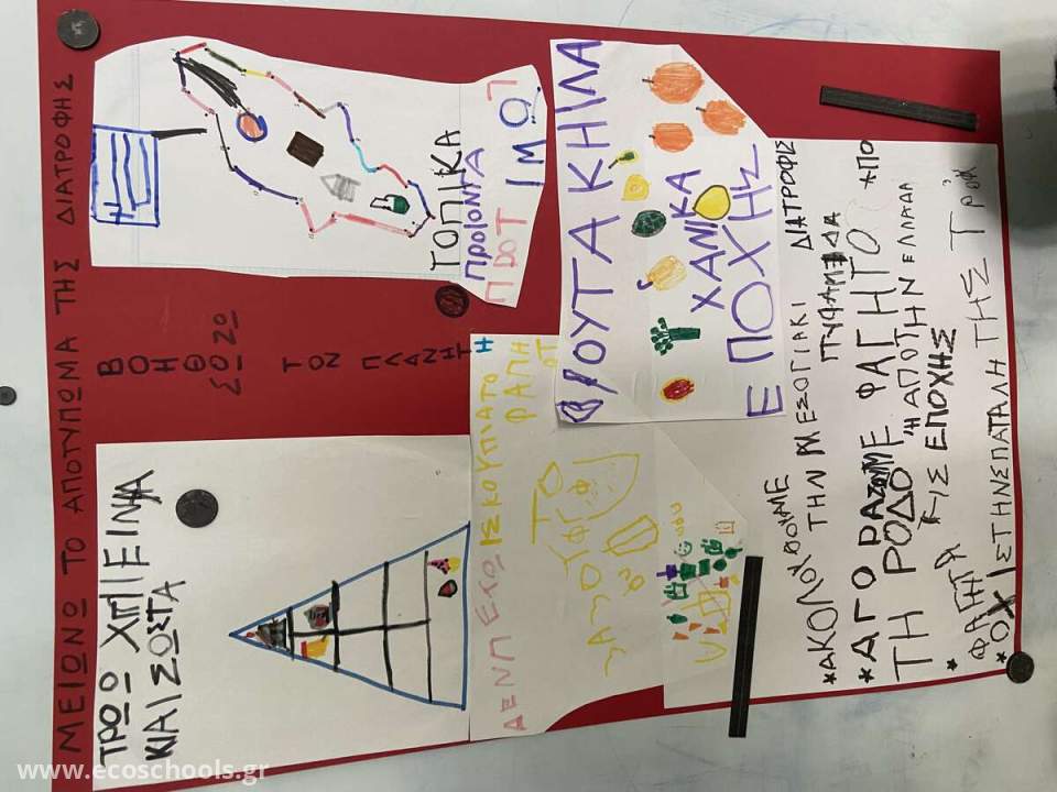 Δημιουργήσαμε μια αφίσα για να ευαισθητοποιήσουμε όλους τους μαθητές και τους γονείς τους στο θέμα της σπατάλης της τροφής και να τους γνωστοποιήσουμε τρόπους να αποφευχθεί αυτό το φαινόμενο.