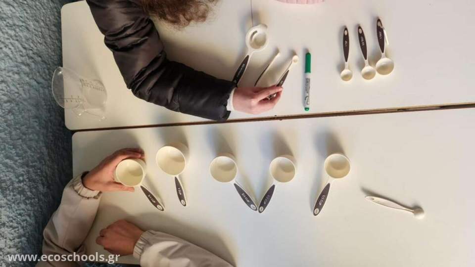 Οι μαθητές/μαθήτριες αρχικά μελέτησαν την συνταγή, ενημερώθηκαν για τις μονάδες μέτρησης που υπήρχαν σε αυτή και για τα κατάλληλα δοχεία μέτρησης, μέτρησαν ποσότητες που τους ζητήθηκαν, έμαθαν πώς να υπολογίζουν τις ζητούμενες ποσότητες και να κάνουν τις απαιτούμενες μετατροπές.