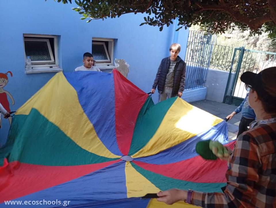 Το παιχνίδι με το αλεξίπτωτο, η συνεργασία για τη συλλογή των «υγιεινών τροφών» και οι ομαδικές θεατρικές εκφράσεις ενισχύουν τη συνεργασία και τη συνοχή μέσα στην ομάδα.