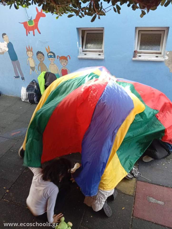 Η κίνηση, το παιχνίδι με το αλεξίπτωτο και η θεατρική έκφραση ενεργοποιούν το σώμα, ενισχύουν τη μνήμη και βοηθούν τα παιδιά να κατανοήσουν έννοιες μέσα από πράξη και εμπειρία.