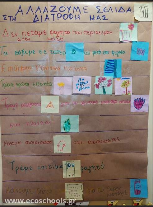 Η συνεργατική δημιουργία του οικοκώδικα αποτέλεσε ευκαιρία για ευαισθητοποίηση των μαθητών πάνω στο κρίσιμο περιβαλλοντικό ζήτημα της βιωσιμότητας. Μέσα από τον διάλογο και τη συμμετοχή, οι μαθητές δεσμεύτηκαν να εφαρμόζουν στην πράξη όσα διατύπωσαν στον κώδικα. Είναι μια ευκαιρία να καλλιεργήσουν συνειδητές διατροφικές συνήθειες από νωρίς και να λειτουργήσουν ως παράδειγμα. Η αναρτημένη μορφή του στους χώρους του σχολείου λειτουργεί ως καθημερινή υπενθύμιση της κοινής μας αποστολής: να ζούμε με σεβασμό προς τη φύση, μέσα από τις μικρές αλλά ουσιαστικές επιλογές μας. Τα παιδιά δείχνουν πώς μπορούμε να μειώσουμε το περιβαλλοντικό μας αποτύπωμα μέσα από τη διατροφή.