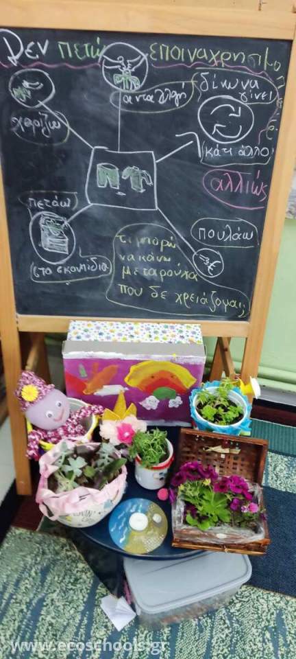 Στα πλαίσια της δράσης, ανακύκλωση διάφορων αντικειμένων, ασχοληθήκαμε με την συγκέντρωση και επαναχρησιμοποίηση πραγμάτων και ρούχων.