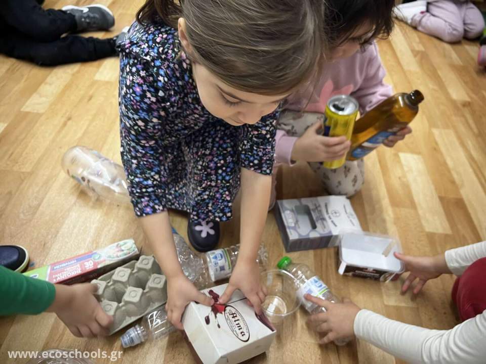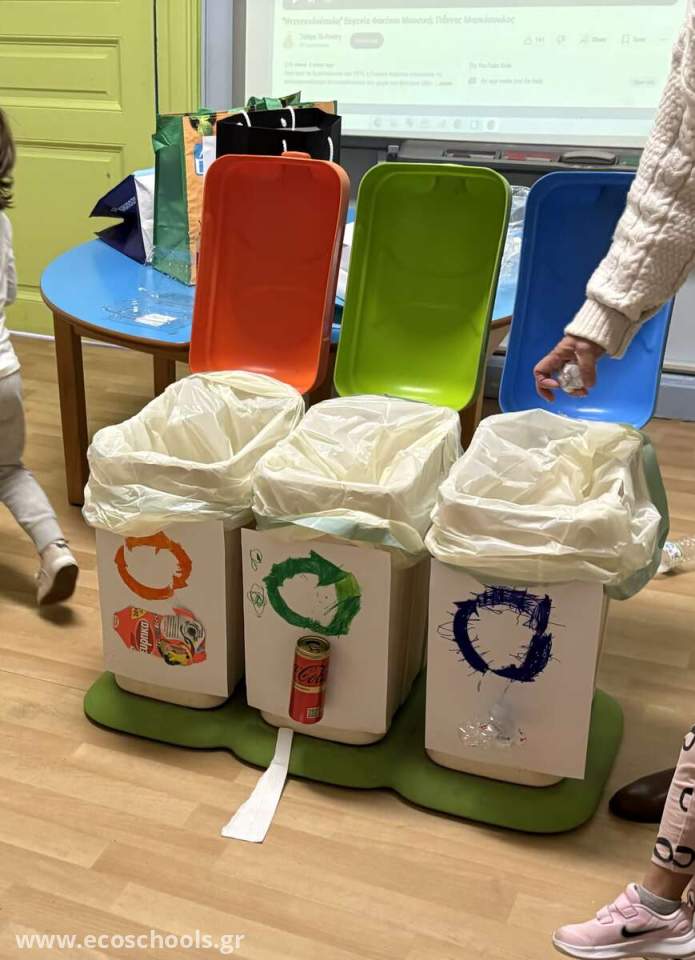Ξεχωρίσαμε όλα τα υλικά της ανακύκλωσης σε τρεις κατηγορίες ,πλαστικά,χάρτινα,αλουμίνιο ,με σύνθημα : ΤΑ ΣΚΟΥΠΙΔΙΑ ΔΕΝ ΕΙΝΑΙ ΓΙΑ ΠΕΤΑΜΑ