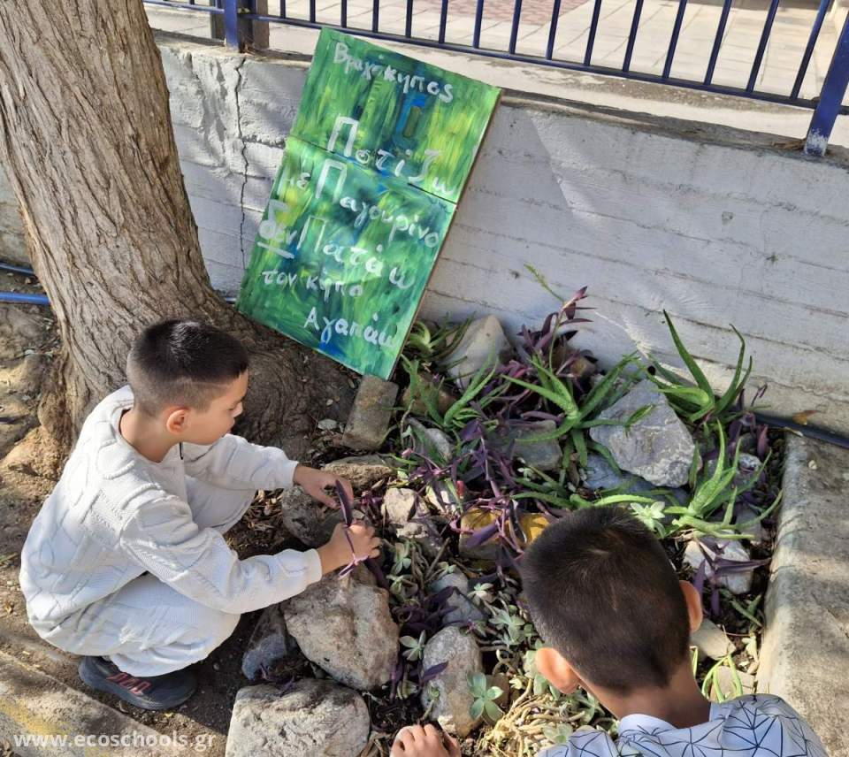 Στόχος: Η αισθητική και βοτανική ανανέωση του υπάρχοντος βραχόκηπου, με ενεργή συμμετοχή των μαθητών, για τη δημιουργία μιας βιώσιμης, όμορφης και εκπαιδευτικής γωνιάς στην αυλή του σχολείου.