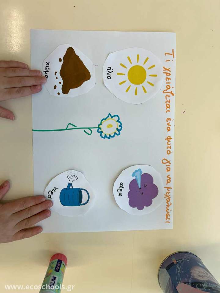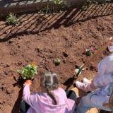 Αφού μαζέψαμε και τα τελευταία λαχανικά από το θερμοκήπιο ξεκινήσαμε να προετοιμάζουμε τον κήπο μας για να υποδεχτεί τα λουλούδια της άνοιξης. Αρχικά σκαλίσαμε και ανανεώσαμε το χώμα, ρίξαμε λίπασμα από τον κομποστοποιητή μας και φυτέψαμε τα λουλούδια που έφεραν τα παιδιά. Καθώς περίσσεψαν αρκετά λουλούδια αποφασίσαμε να φτιάξουμε ένα δεύτερο ανθόκηπο στην άλλη μεριά της αυλής μας. Τα παιδιά είχαν τη χαρά για άλλη μια φορά να εξοικοιωθούν με τα εργαλεία του κήπου, να μάθουν ονόματα λουλουδιών, να ταξινομήσουν με βάση το χρώμα, να μετρήσουν τα λουλούδια, να μάθουν για την ανάπτυξη και φροντίδα των φυτών μέσα από μια βιωματική διαδικασία. Αποφάσισαν να φτιάξουν και πάλι πινακίδες για τη φροντίδα του κήπου και χωρίσαμε τις αρμοδιότητες ανά τμήμα.