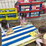 Για να απολαμβάνουμε τον κήπο μας φτιάξαμε με παλέτες και κορμούς ένα τραπεζάκι με καθίσματα, αλλά και μία μικρή βιβλιοθήκη για να μπορούν τα απιδιά να διαβάσουν τις ώρες που είμαστε στην αυλή.