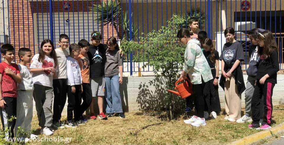 Το πότισμα μικρών δέντρων στο σχολικό προαύλιο είναι μια υπέροχη πρωτοβουλία! Η φροντίδα των δέντρων όχι μόνο διατηρεί τον χώρο όμορφο και δροσερό, αλλά διδάσκει στα παιδιά την αξία της φύσης, της ευθύνης και της προστασίαςτου περιβάλλοντος.