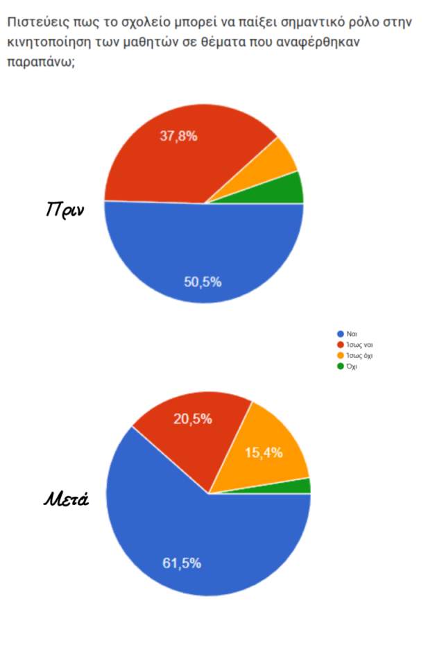 Με την ολοκλήρωση των απαντήσεων στο ερωτηματολόγιο εξόδου ελέγχθηκε η αλλαγή στάσης των μαθητών ...