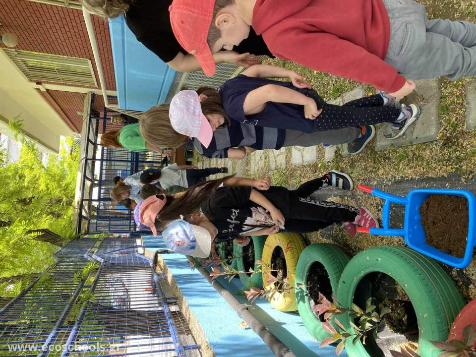 Η πιο ιδιαίτερη στιγμή ήταν όταν φυτέψαμε μια ελιά, στο κέντρο του κήπου μας. Δεν την επιλέξαμε τυχαία. Η ελιά είναι σύμβολο ειρήνης, ζωής και αντοχής. Την τοποθετήσαμε εκεί για να μας θυμίζει όλη την όμορφη διαδρομή που κάναμε στο πλαίσιο του σχεδίου δράσης: τη συνεργασία, την αλληλεγγύη, τη δημιουργικότητα, αλλά και το όραμά μας να προσφέρουμε στα παιδιά έναν χώρο γεμάτο ομορφιά, φροντίδα και έμπνευση.