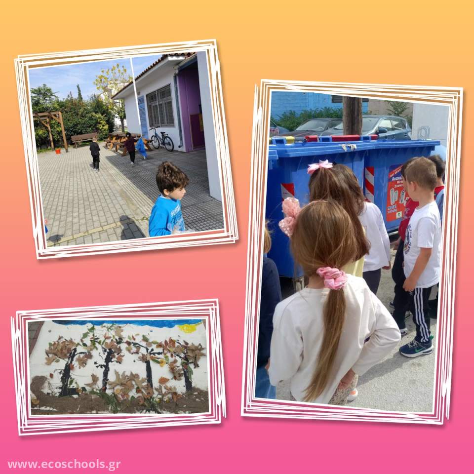 ΥΛΟΠΟΙΗΣΗ ΚΑΘΑΡΙΟΤΗΤΑΣ: τα νήπια με τη βοήθεια των Νηπιαγωγών καθαρίζουν την αυλή, μαζεύουν σκουπίδια και φύλλα, τοποθετούν τα απορρίμματα σε σακούλες αφού τα ξεχωρίσου ( ανακυκλώσιμα - μη ανακυκλώσιμα)