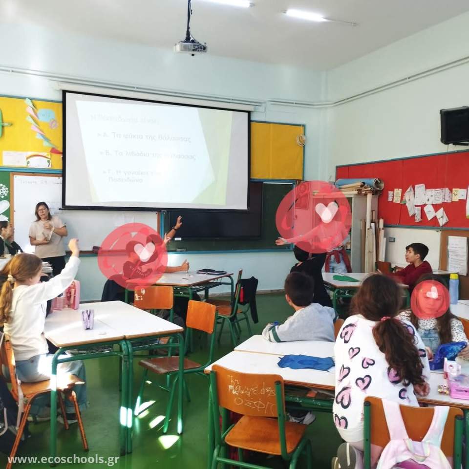 Η περιβαλλοντική οργάνωση Rewild Greece επισκέφτηκε το σχολείο μας ώστε να ενημερώσει τους μαθητές για τα λιβάδια Ποσειδωνίας που απαντώνται στις ακτές μας και για τα οποία τα παιδιά δεν γνώριζαν σχετικά. Έπειτα οι μαθητές έφτιαξαν ενημερωτικά φυλλάδια για το Δήμο και το Λιμενικό, ζητώντας την προστασία των λιβαδιών.