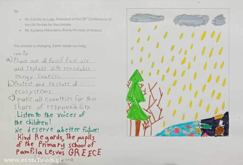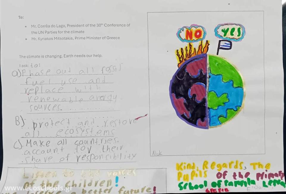 Οι επιστολές των μαθητών/τριών έχουν αναρτηθεί στη σελίδα: https://www.facebook.com/groups/cop30lettertoleaders